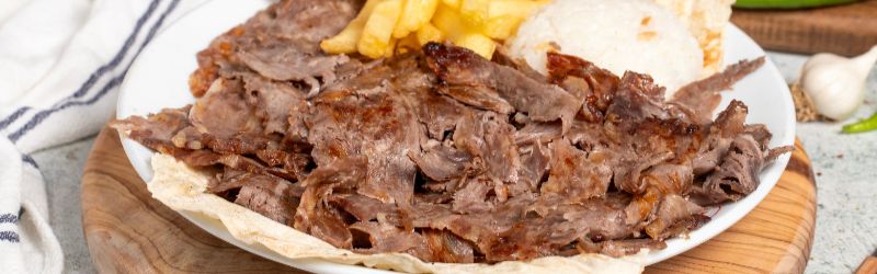 Home-cooked style. Soft and tender meat with fluffy, long basmati rice. Comes with a side portion of sauce and a special salad. -